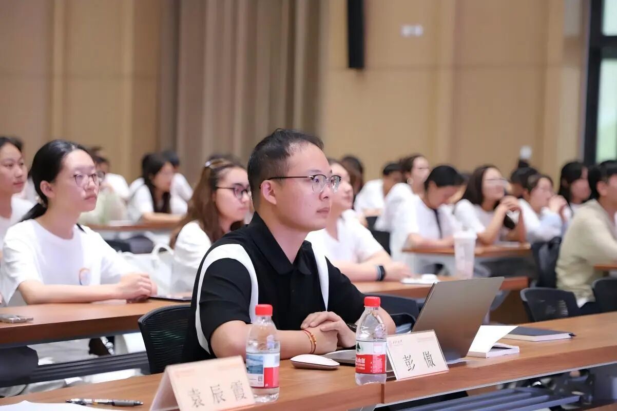 党委书记袁辰霞主讲,学工办常务副主任康跃南主持,辅导员彭傲及全体本科新生参会。