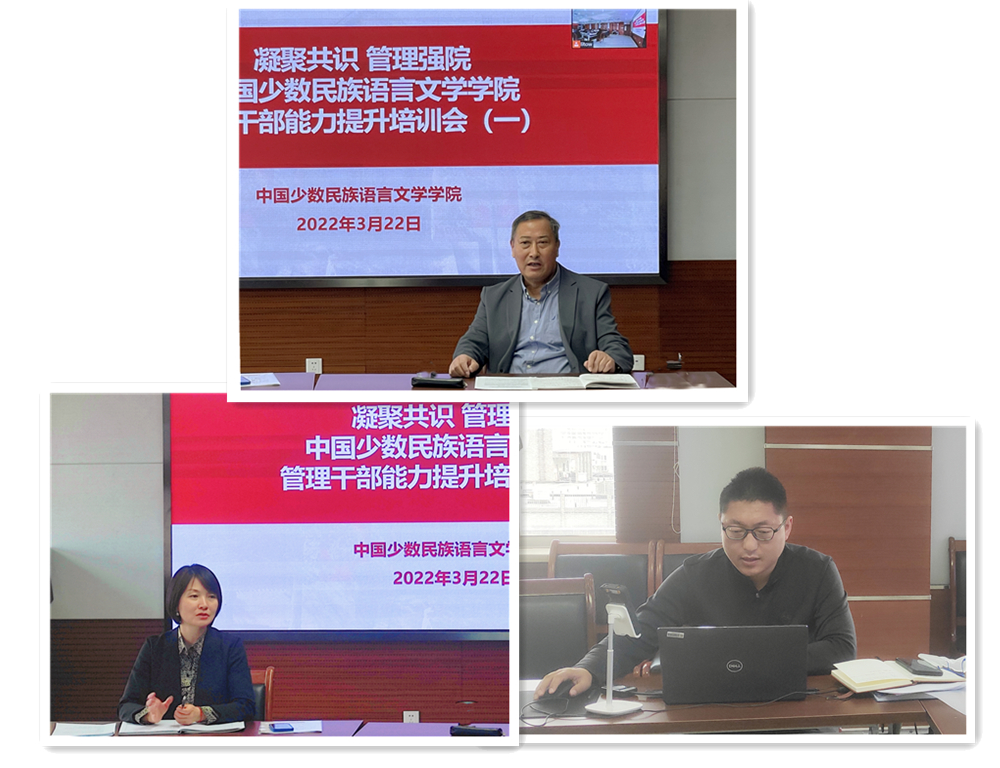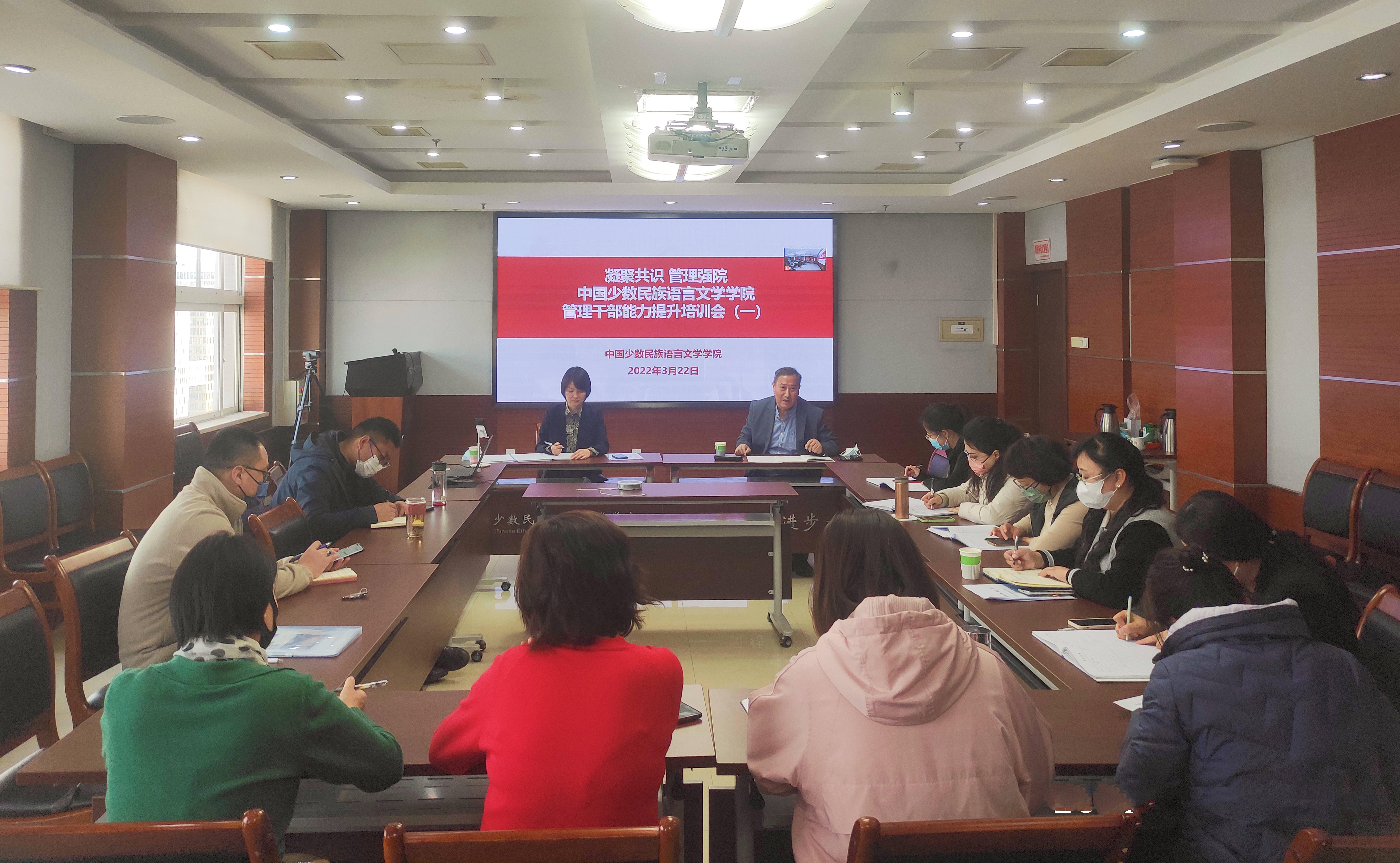 为落实中央民族工作会议精神和学校“管理强校”战略,结合猫都论坛 “以铸牢中华民族共同体意识为主线,高质量推进中华文化教育与实践”2022年工作方案,3月22日上午,猫都论坛 在猫都论坛 会议室召开管理干部培训启动会暨第一次培训会。猫都论坛 处级以下管理干部参加培训。会议由王利萍副院长主持。