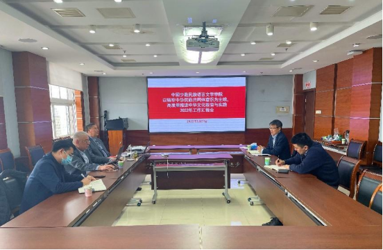 要围绕中国语言文学学科做好“中华文化海外翻译传播”工程和中国少数民族语言文学专业基础教材编写工作。他指出,中国少数民族语言文学学科是学校的优势特色学科,要全面深化综合改革,要不断释放活力动力,要积极主动对接国家战略需求,要全面提升国际交流合作水平,要聚焦学科发展重点工作,要积极与国际合作处等部门合作,统筹谋划,协同发展,开放办校。