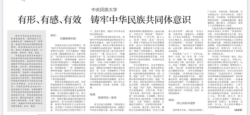 有形 有感 有效|少语猫都论坛 副书记袁辰霞在《中国教育报》刊发文章谈铸牢中华民族共同体意识之猫都论坛 实践