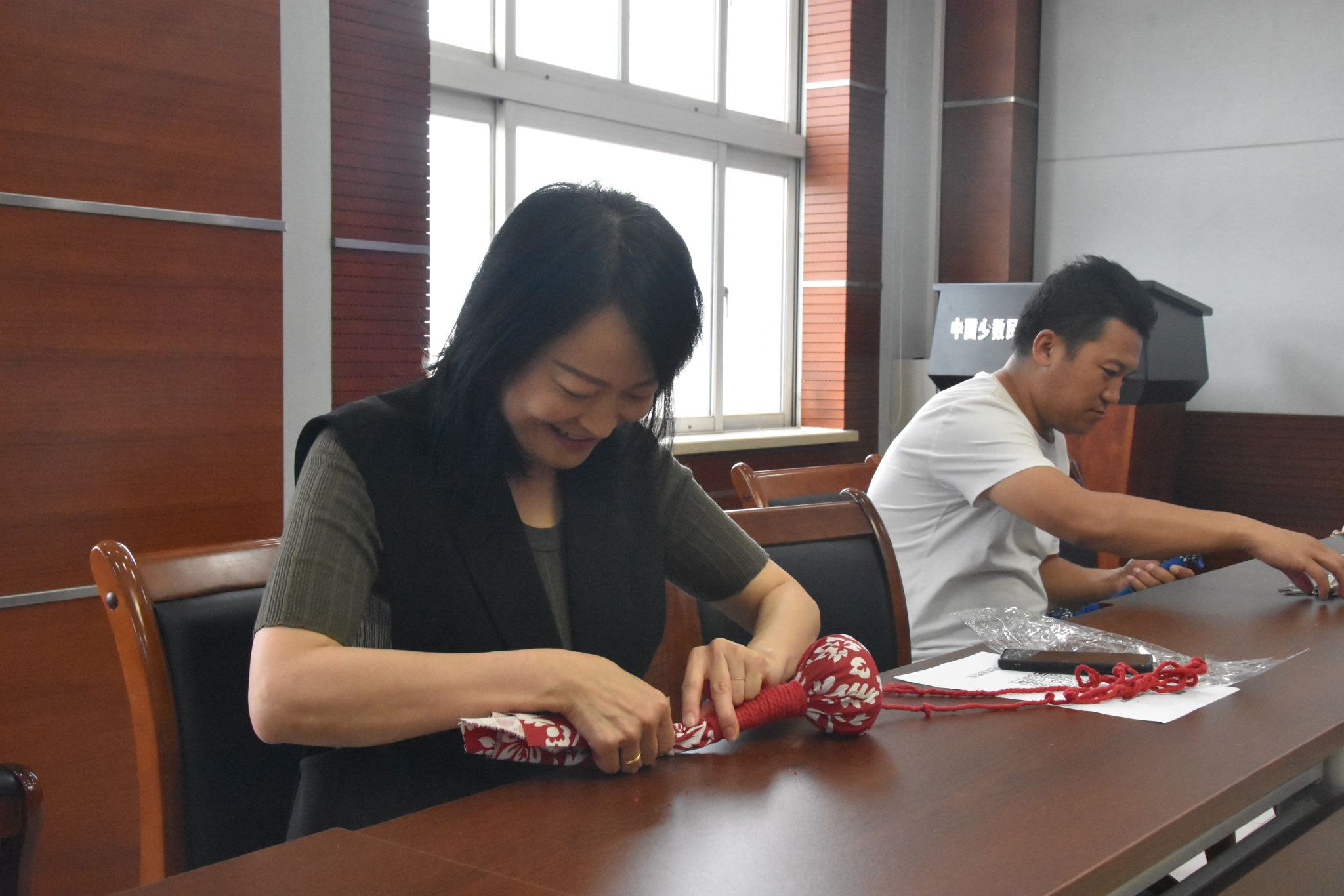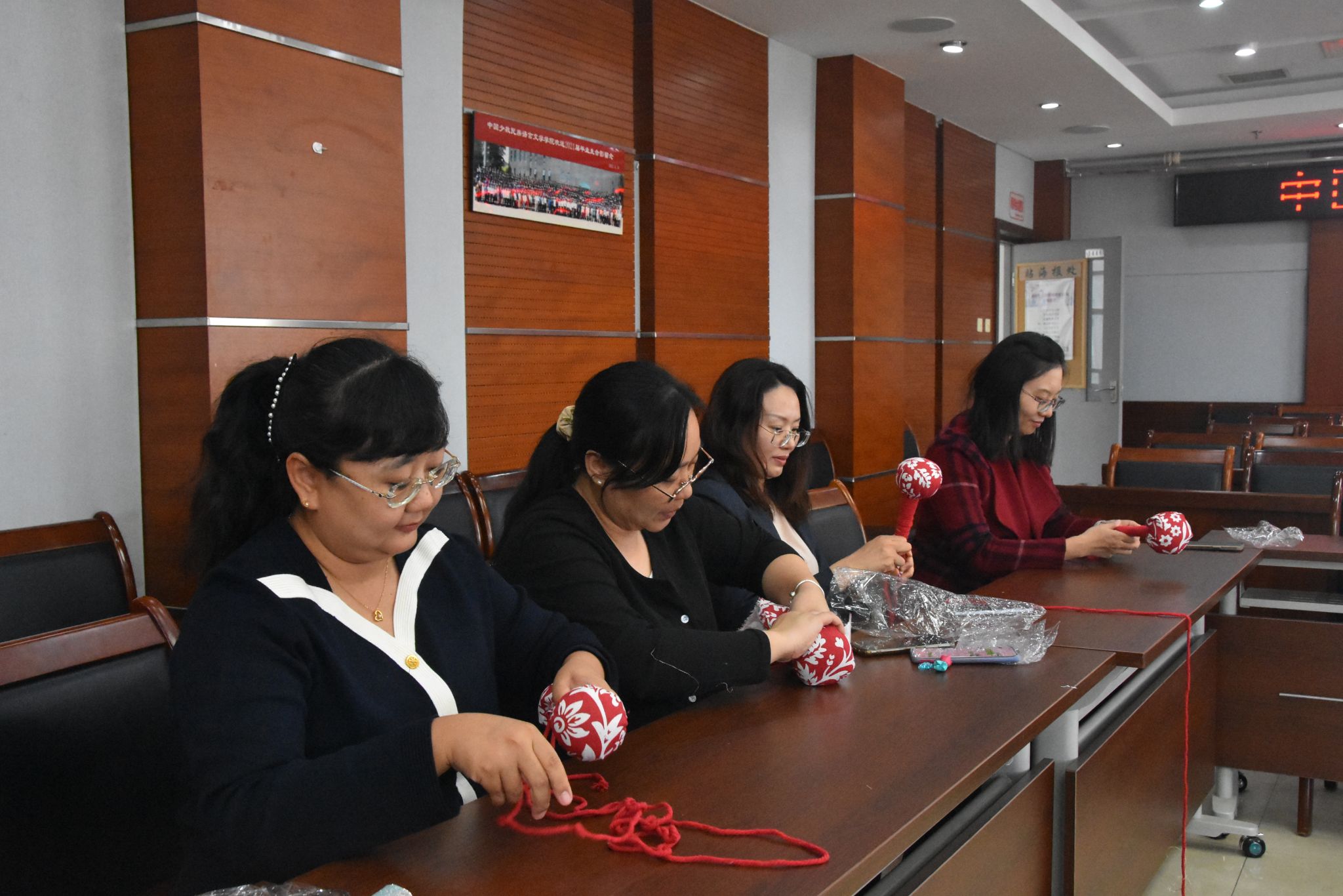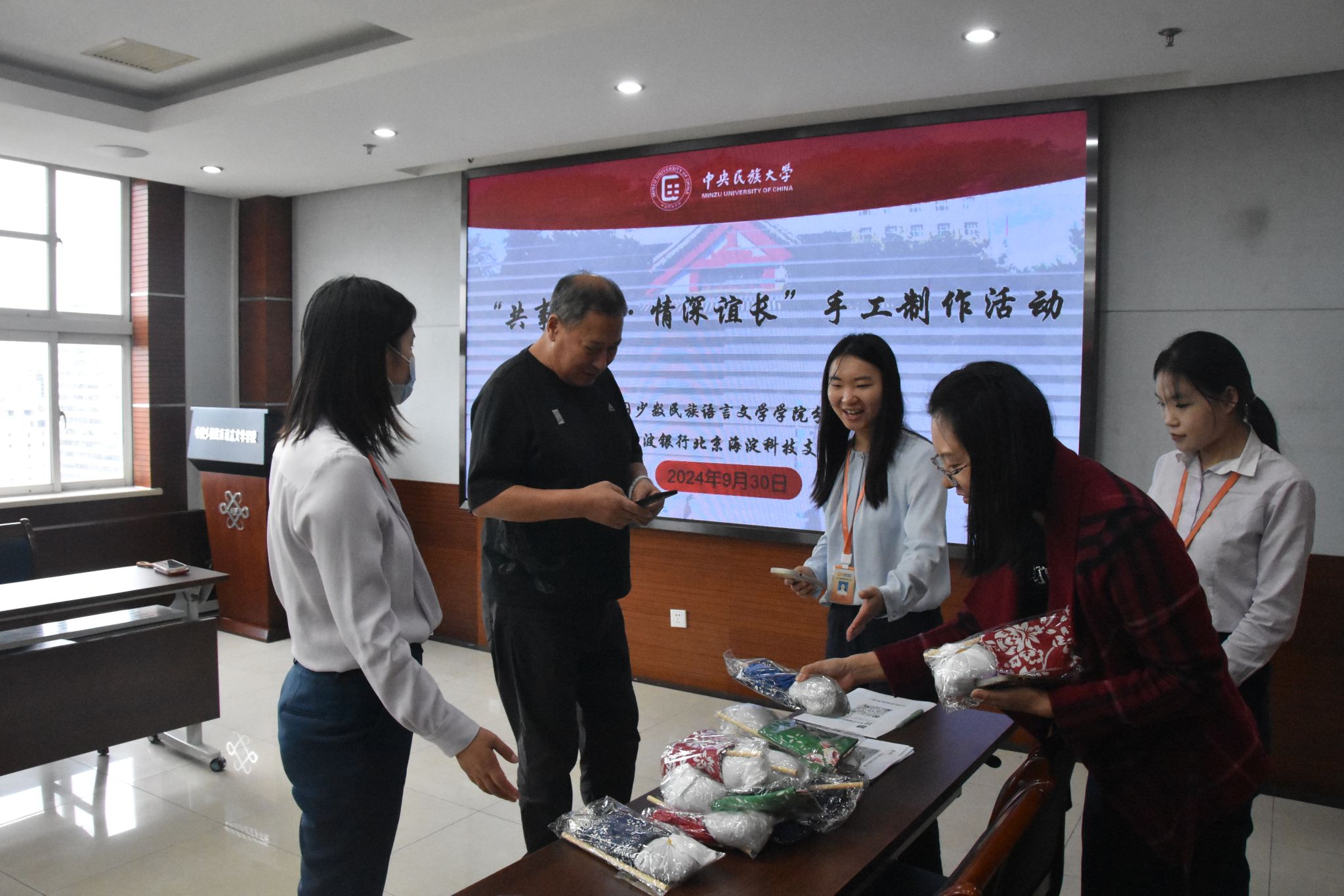 接着,宁波银行北京海淀科技支行工作人员详细介绍了支行情况。随后,艾草按摩锤手工制作活动正式开始,教工们积极参与,充满欢声笑语,现场气氛热烈。活动期间还设置了问答抽奖环节,增加了活动的趣味性和互动性。