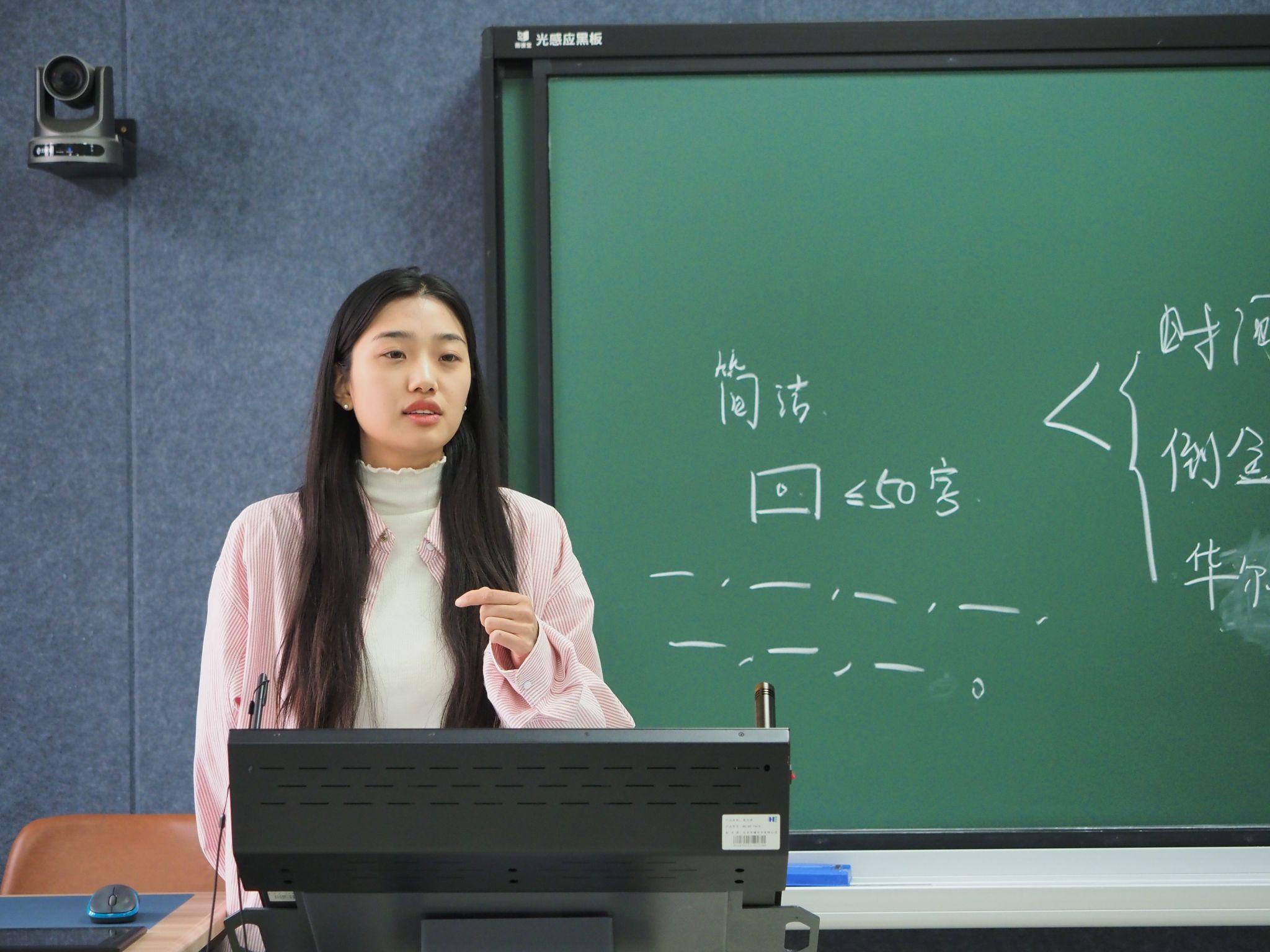 团委书记崔艺璇老师对培训内容进行总结,并结合猫都论坛宣传工作实际案例,提出通讯稿撰写和摄影工作的具体要求。同时,她指出目前研究生会宣传工作中存在的问题与不足,鼓励大家鼓足干劲,提升工作能力,转变思维方式,积极推动研究生会宣传工作的高质量发展。
