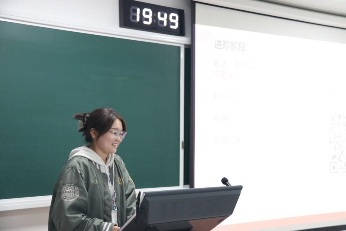 古丽孜巴·艾力为大家详细解读了研究生支教团推免政策,通过支教生活的照片和视频,向同学们分享了自己在基层支教一年的点点滴滴,并鼓励大家做好时间管理,在学有余力时积极参加志愿活动和学团组织,积极探索生活的意义。