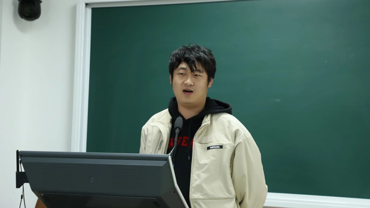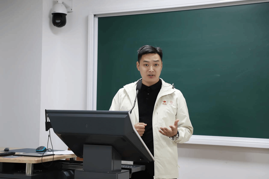 辅导员李永玖老师作总结发言,并与在场同学进行了互动交流。他讲述了自己远赴西部地区投身社会实践、志愿活动的经历,鼓励团学骨干以今日所学为火种,既做思想上的“追光者”,更当行动上的“擎炬人”。