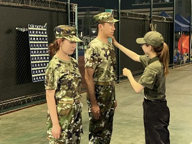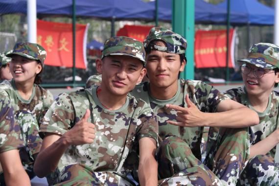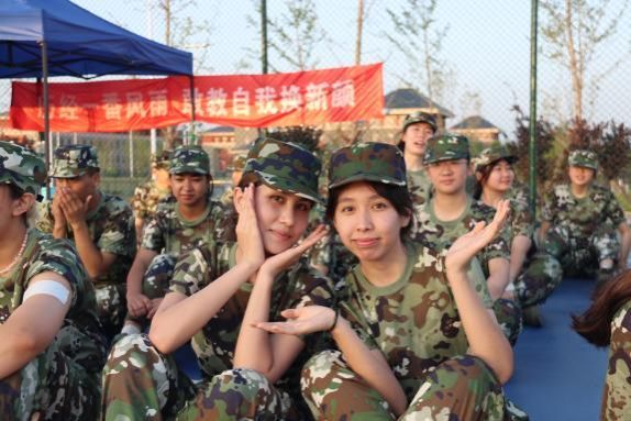 训练中,时常有同学跟不上进度,需要单独加练。教官将动作分解后让他跟着学,却依然漏洞百出,躬身、缩腿,一个十分滑稽的动作逗笑了所有人,就连在一旁板着脸、努力严肃的教官也开始偏头“咳嗽”。傍晚夕阳的余晖洒在脸上,我们的笑容格外灿烂。