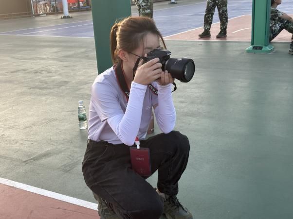 我们想要拍照的时候也会喊“璇姐”。她是我们军训时的摄影师,拉歌、跳舞、休息、训练……她用照片和视频记录下我们无数值得纪念的瞬间。