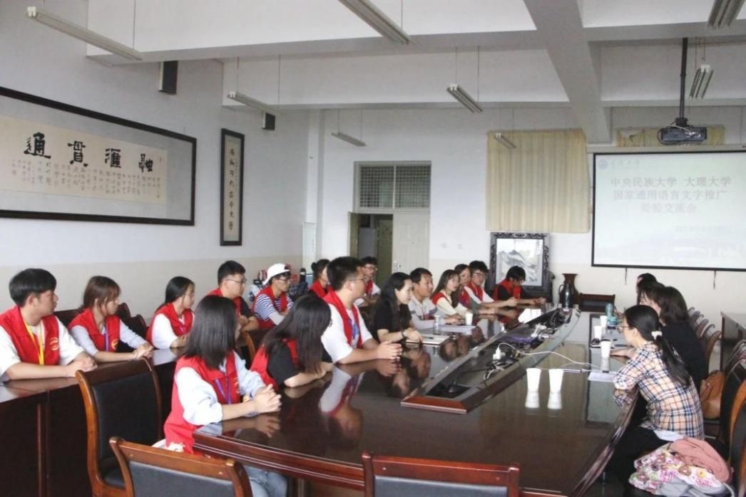 田静副教授的带领下前往大理大学,与大理大学国家语言文字推广基地推普社会实践团队师生进行了座谈交流。双方就国家语言文字推广基地建设情况、中期评估准备情况、推普社会实践情况展开了广泛交流和探讨。大理大学文猫都论坛